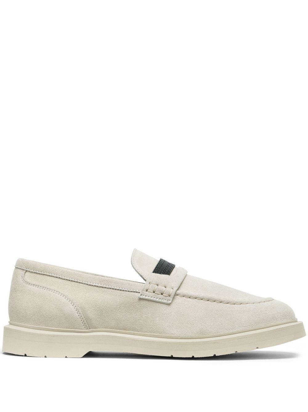leather suede loafers Highlights - White - Calf suede - Almond toe - Slip-on style - Rubber lug sole Made in Italy Composition Suede 100% SIZE & FIT Measurement HEEL 0.78 in(2 cm) Sole height 0.59 in(1.5 cm)
