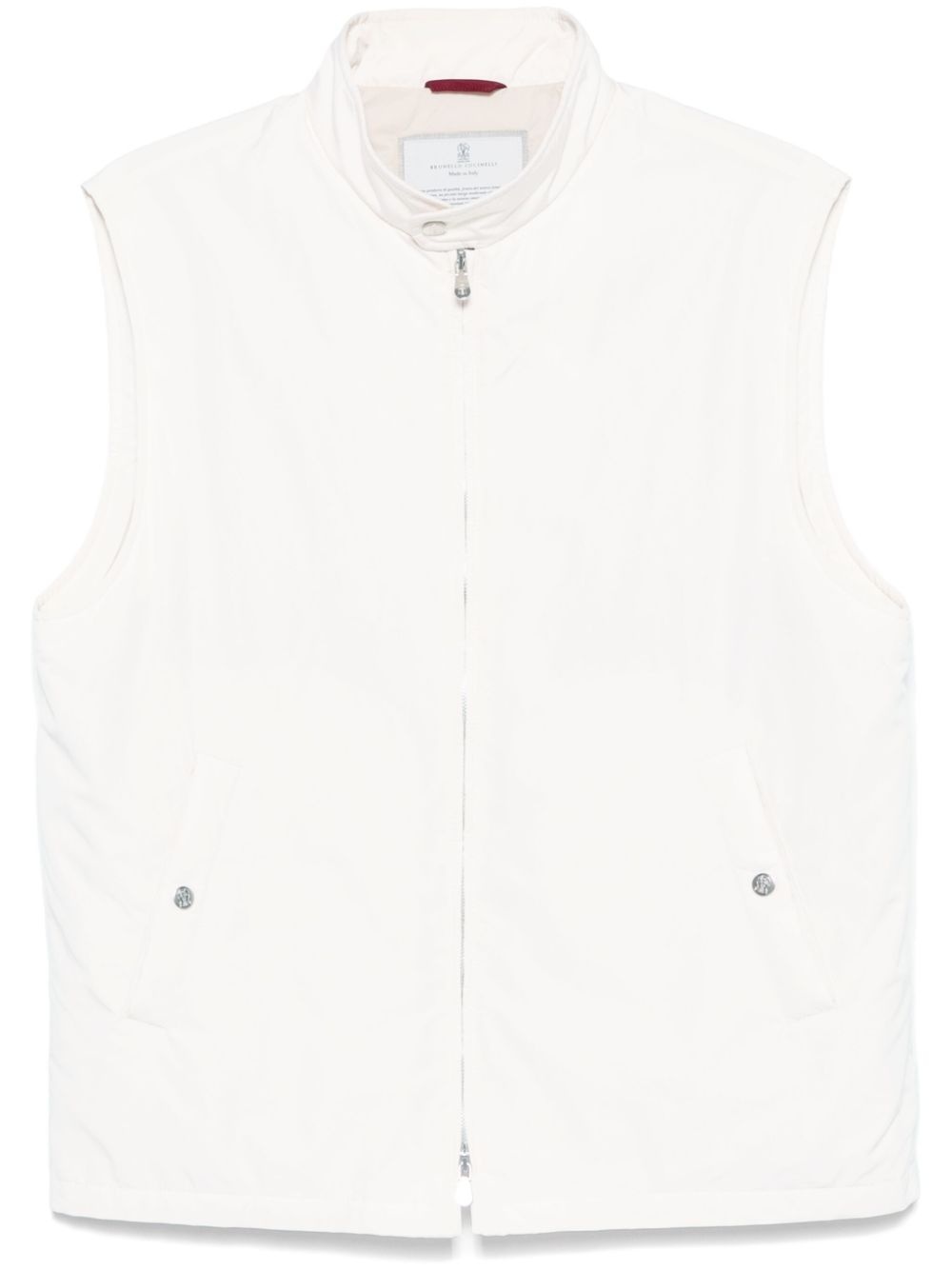 lightweight gilet Highlights - Almond beige - Front two-way zip fastening - Front press-stud fastening - Two side welt pockets - Multiple internal slip pockets Made in Italy Composition Outer: Polyester 70%, Polyamide 30% Lining: Nylon 100%, Polyester 100% SIZE & FIT Model measurements Height 6 ft 2 in(1.88 m) Bust/Chest 36.61 in(93 cm) Hips 36.61 in(93 cm) Waist 29.92 in(76 cm) FittingInformation Designed for a regular fit, allowing for a comfortably loose fit throughout the body Made from a padded non-stretch fabric, giving it no natural elasticity Washing instructions Dry Clean Only