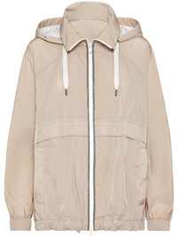 lightweight zip-front jacket Highlights - Beige/white - Drawstring hood - Spread collar - Front two-way zip fastening - Long sleeves - Elasticated cuffs - Side pouch pockets - Elasticated hem Made in Italy Composition Nylon 100% Washing instructions Read Manufacturer Guidelines