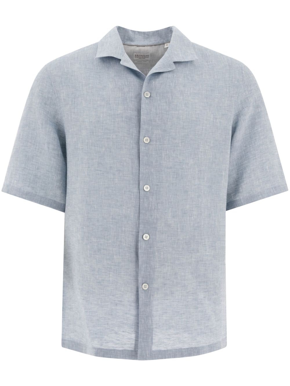 linen shirt Highlights - Ice blue - Front button fastening - Cuban collar - Short sleeves - Straight hem Made in Italy Composition Linen/Flax 100% SIZE & FIT Measurement CHEST 48.03 in(122 cm) SLEEVE LENGTH 22.83 in(58 cm) Shoulder Width 20.07 in(51 cm) Washing instructions Read Manufacturer Guidelines