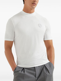 logo-applique T-shirt Highlights - White - Mock neck - Short sleeves - Straight hem Made in Italy Composition Nylon 51%, Polyester 44%, Fabric 5%