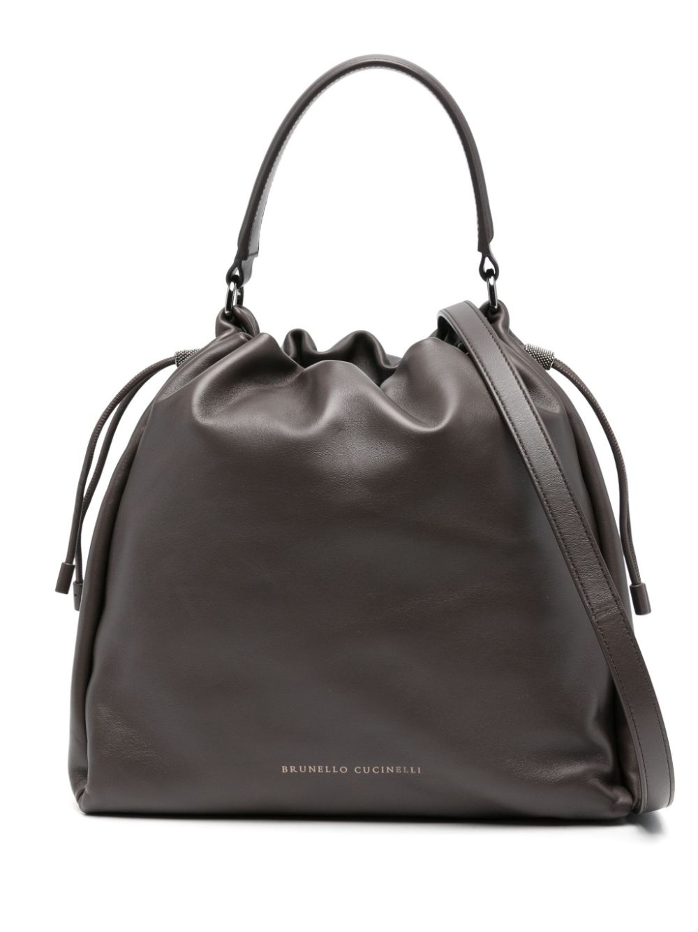 leather cross body bag Highlights - Grey - Calf leather - Smooth grain - Debossed logo to the front - Signature monili chain detail - Drawstring fastening - Single top handle - Adjustable detachable shoulder strap - Main compartment - Internal zip-fastening pocket - Debossed internal logo - Suede lining - Silver-tone hardware - This piece comes complete with a protective dust bag. Made in Italy Composition Outer: Calf Leather 100% SIZE & FIT Model measurements Height 5 ft 10 in(1.78 m) Bust/Chest 31.49 in(80 cm) Hips 37 in(94 cm) Waist 23.62 in(60 cm) Measurement DEPTH 5.9 in(15 cm) HANDLE 3.14 in(8 cm) HEIGHT 9.84 in(25 cm) STRAP 47.24 in(120 cm) WIDTH 11.02 in(28 cm)