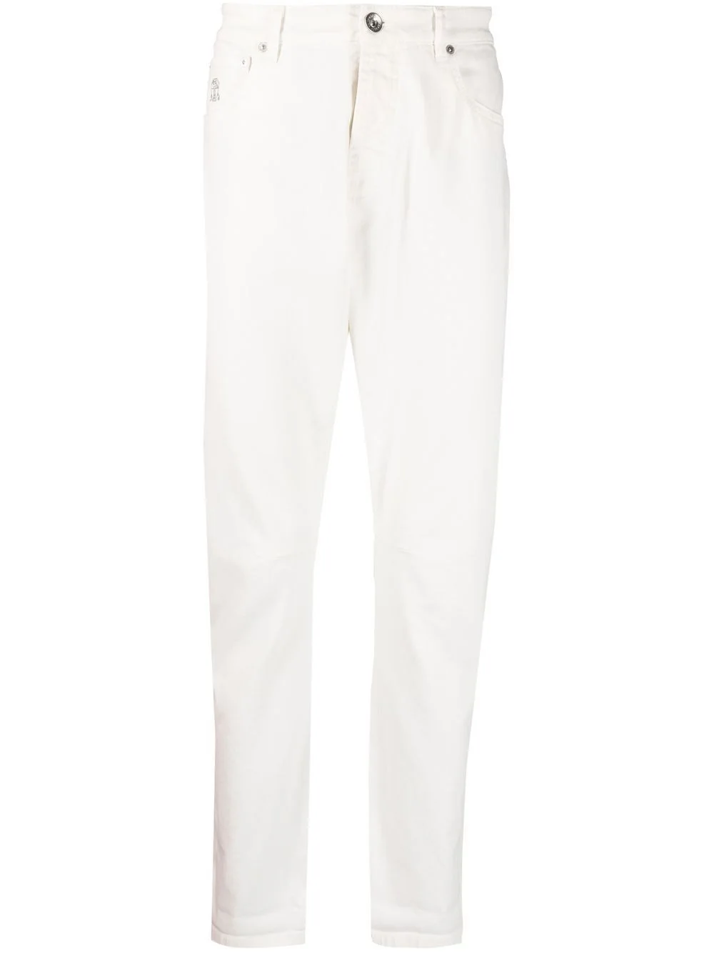 logo-detail straight-leg jeans white stretch-cotton denim concealed fly and button fastening belt loops classic five pockets embroidered logo to the side straight leg Made in Italy Composition Outer: Cotton 99%, Elastane 1% Lining: Cotton 58%, Polyester 42% SIZE & FIT Model measurements Height 6 ft 2 in(1.87 m) Bust/Chest 38.18 in(97 cm) Hips 36.61 in(93 cm) Waist 29.13 in(74 cm) Washing instructions Machine Wash