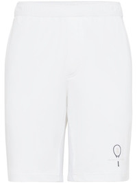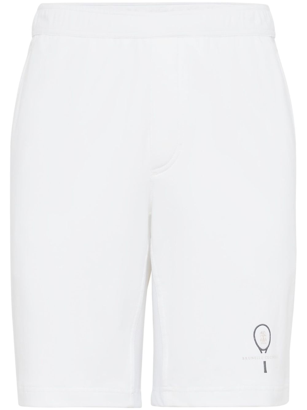 logo-embroidered cotton shorts Highlights - White - Cotton - Embroidered logo to the side - Elasticated waistband - Two side slash pockets - Rear welt pocket - Knee-length Made in Italy Composition Cotton 100% SIZE & FIT Measurement FRONT RISE 12.59 in(32 cm) WAIST 30.7 in(78 cm)