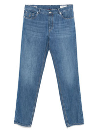logo-embroidered jeans Highlights - Indigo blue - Button fly fastening - Classic five pockets - Belt loops - Logo patch to the rear Made in Italy Composition Lining: Cotton 100% Outer: Calf Leather 100%, Cotton 100% SIZE & FIT Model measurements Height 6 ft 0 in(1.84 m) Bust/Chest 37.79 in(96 cm) Hips 37 in(94 cm) Waist 31.49 in(80 cm) FittingInformation Designed with a straight leg, these jeans allow for an unrestricted and comfortable fit over the leg Sturdy and hard-wearing, this denim piece offers no stretch