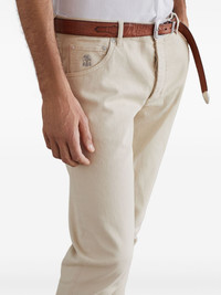 logo-embroidered jeans Highlights - Light beige - Cotton blend - Denim - Embroidered logo to the side - Logo patch to the rear - Mid-rise - Belt loops - Straight leg - Front button and zip fastening - Classic five pockets Made in Italy Composition Cotton 99%, Elastane 1%