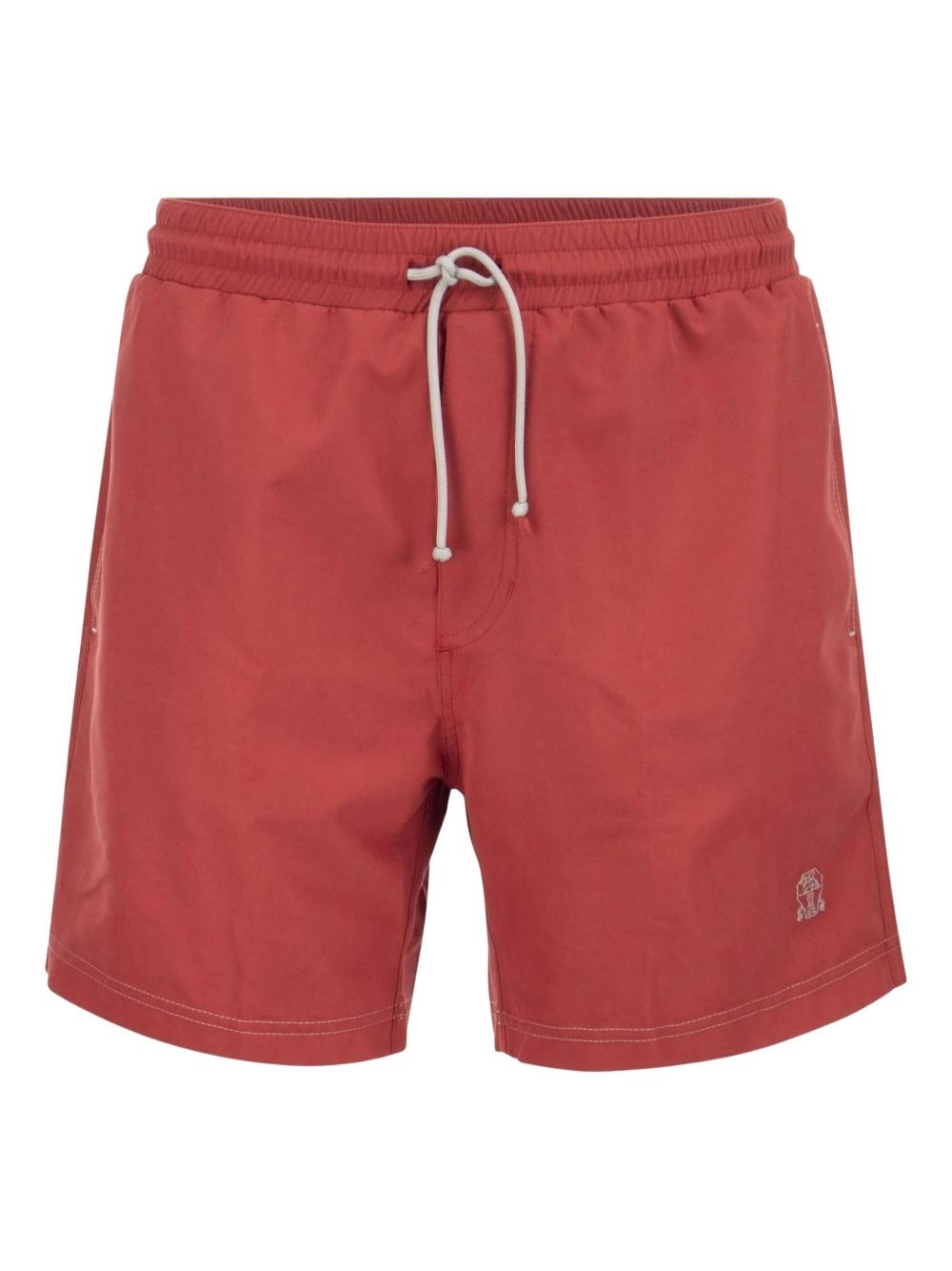 logo-embroidered swim shorts Highlights - Rust red - Elasticated drawstring waistband - Two side slit pockets - Rear patch pocket - Be mindful to try on swimwear over your own garments. Made in Italy Composition Polyester 100% Washing instructions Read Manufacturer Guidelines