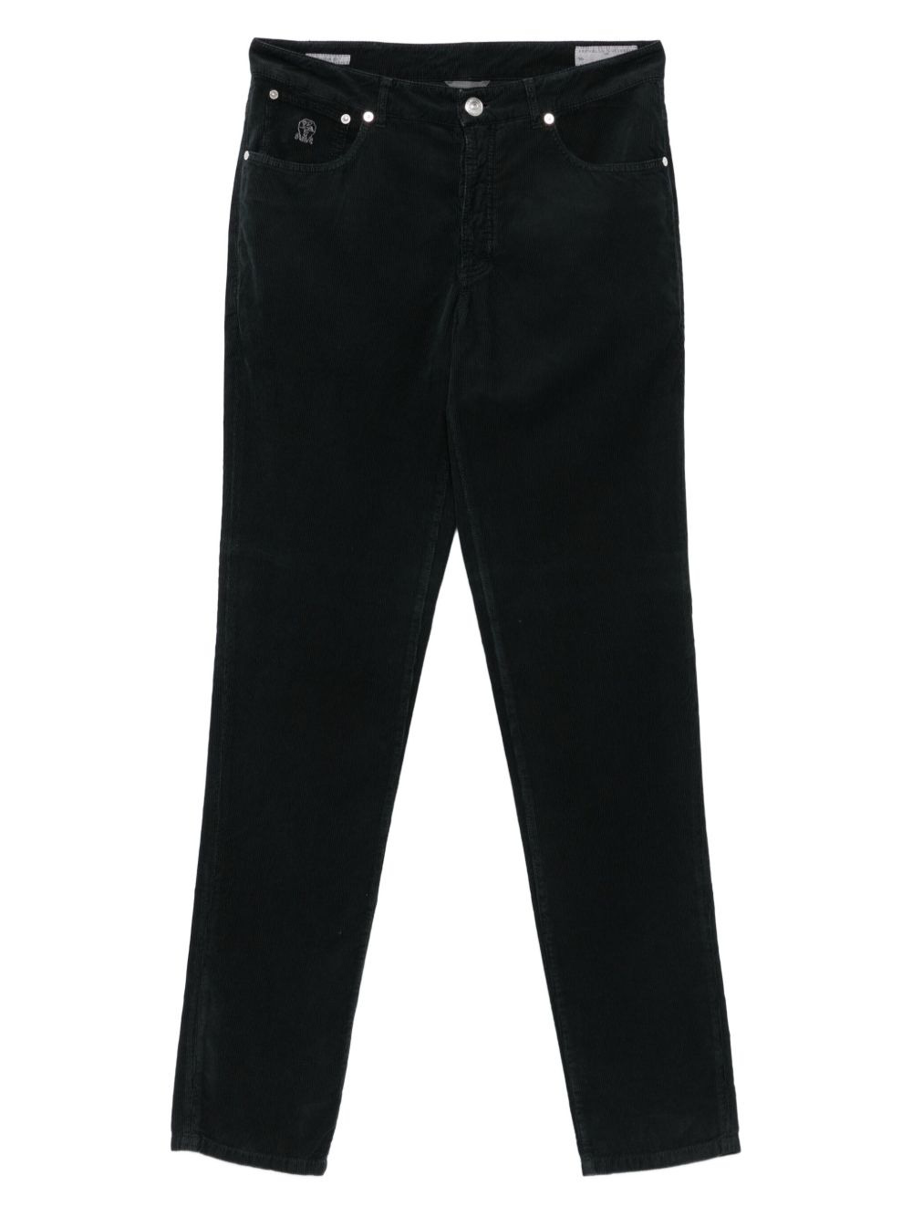 logo-embroidery corduroy trousers Highlights - Black - Corduroy texture - Five-pocket styling - Embroidered logo - Straight leg Made in Italy Composition Outer: Calf Leather 100%, Cotton 100% Lining: Cotton 100% SIZE & FIT Model measurements Height 6 ft 0 in(1.84 m) Bust/Chest 37.79 in(96 cm) Hips 37 in(94 cm) Waist 31.49 in(80 cm) Washing instructions Machine Wash