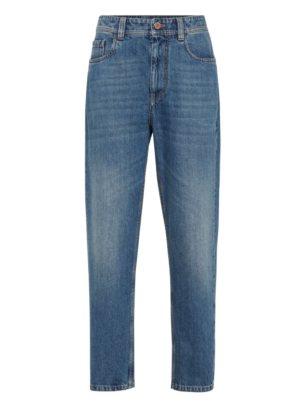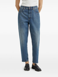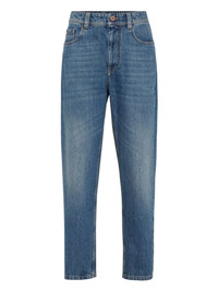 Authentic denim baggy tapered trousers with monili