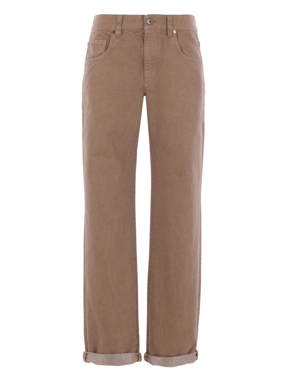 logo-patch jeans Highlights - Brown - Logo-patch - Zip fly - Button fastening - Five-pockets - Belt loops - Cuffed hems Imported Composition Fabric 100% Washing instructions Read Manufacturer Guidelines