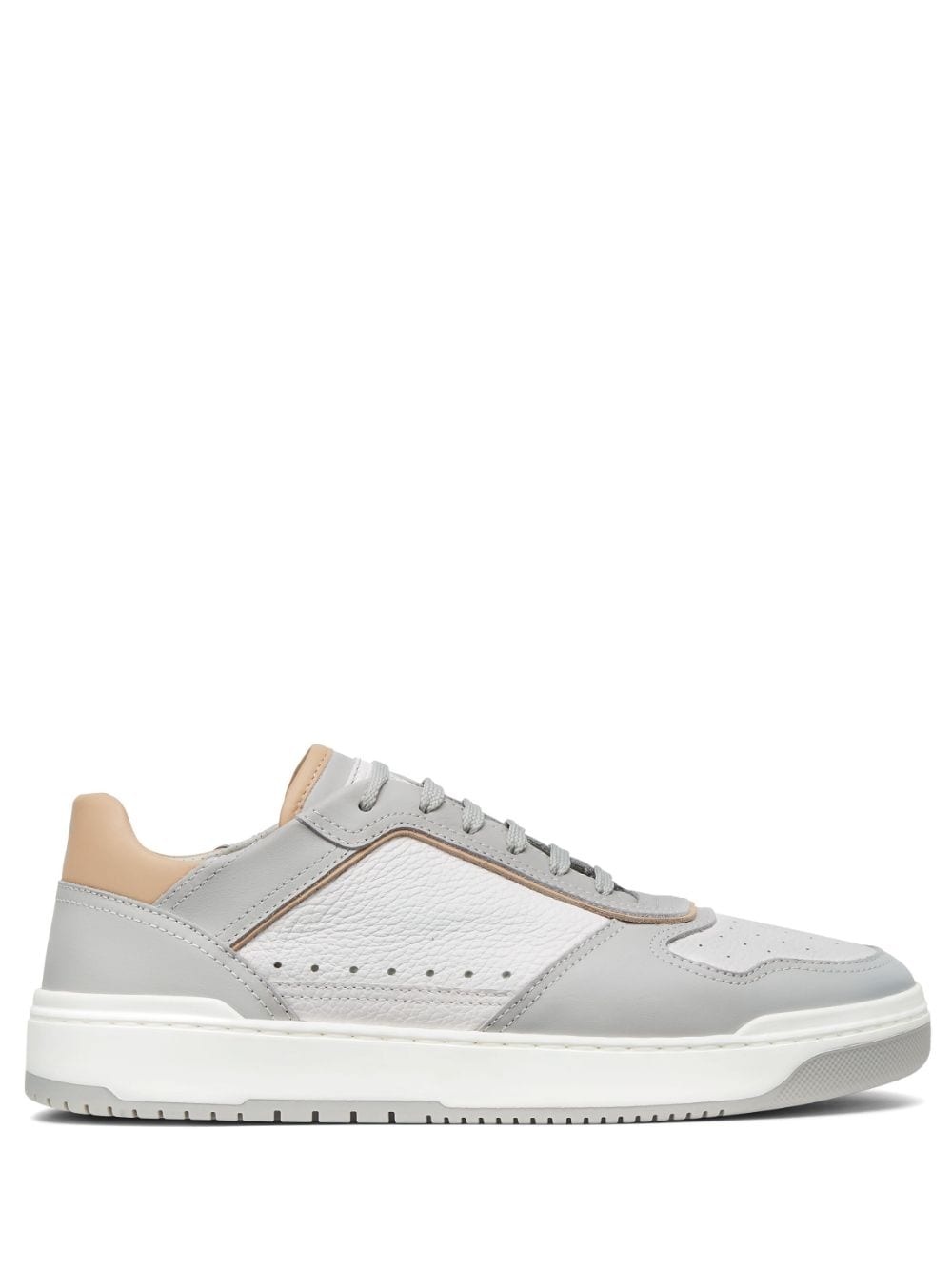 logo-patch leather sneakers Highlights - Light grey/off-white - Leather - Perforated detailing - Logo patch at the tongue - Contrasting heel counter - Round toe - Front lace-up fastening - Branded insole - Flat rubber sole Made in Italy Composition Sole: Rubber 100% Lining: Leather 100% Outer: Leather 100%