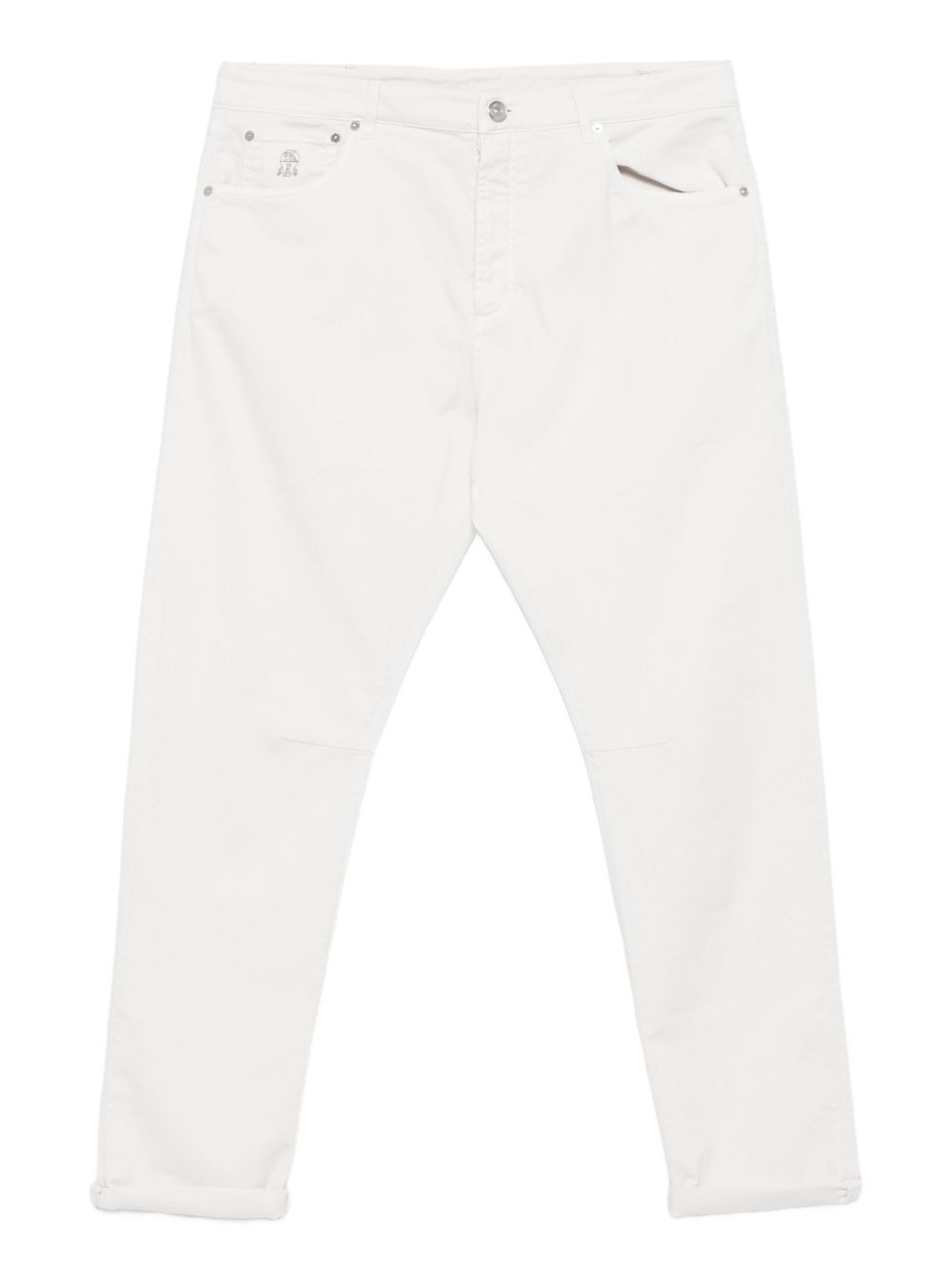 logo-plaque five-pocket jeans Highlights - White - Cotton - Five-pocket styling - Button fly - Cuffed hems Made in Italy Composition Outer: Calf Leather 100%, Cotton 99%, Spandex/Elastane 1% Lining: Cotton 100% Washing instructions Machine Wash