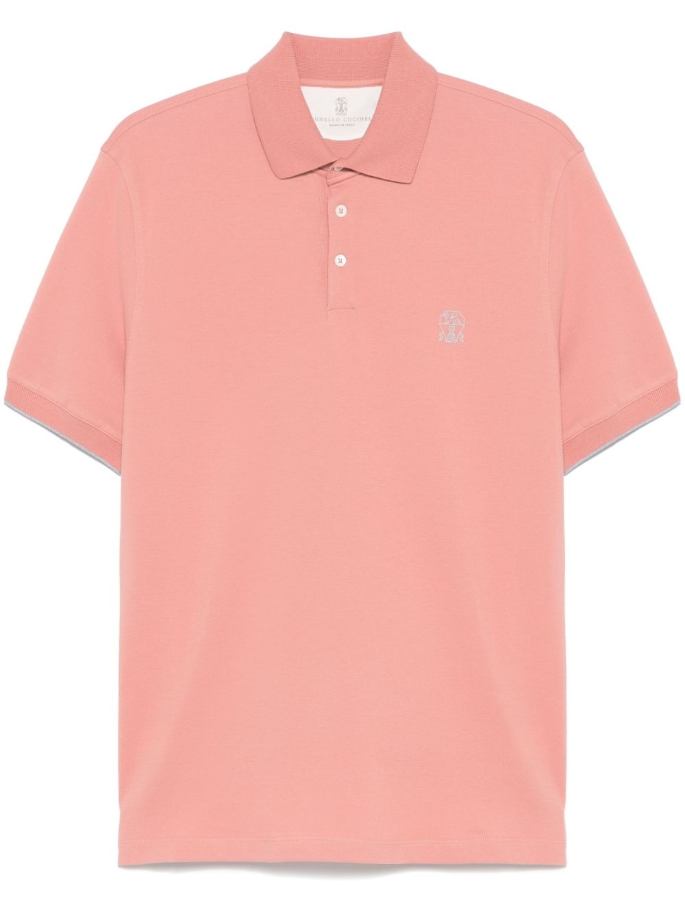 logo-print polo shirt Highlights - Peach pink - Front button placket - Short sleeves - Short side slits Made in Italy Composition Cotton 100% SIZE & FIT Model measurements Height 6 ft 2 in(1.87 m) Bust/Chest 37.79 in(96 cm) Hips 37.79 in(96 cm) Waist 30.31 in(77 cm) FittingInformation Designed for a relaxed fit, this polo shirt offers comfort and movement Made from a midweight non-stretch fabric, this piece offers minimal elasticity when worn