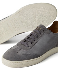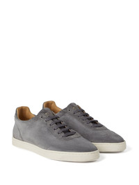 logo-print suede sneakers Highlights - Ash grey - Leather/suede - Branded heel counter - Almond toe - Front lace-up fastening - Branded leather insole - Flat rubber sole Made in Italy Composition Lining: Leather 100% Outer: Suede 100% Sole: Rubber 100%