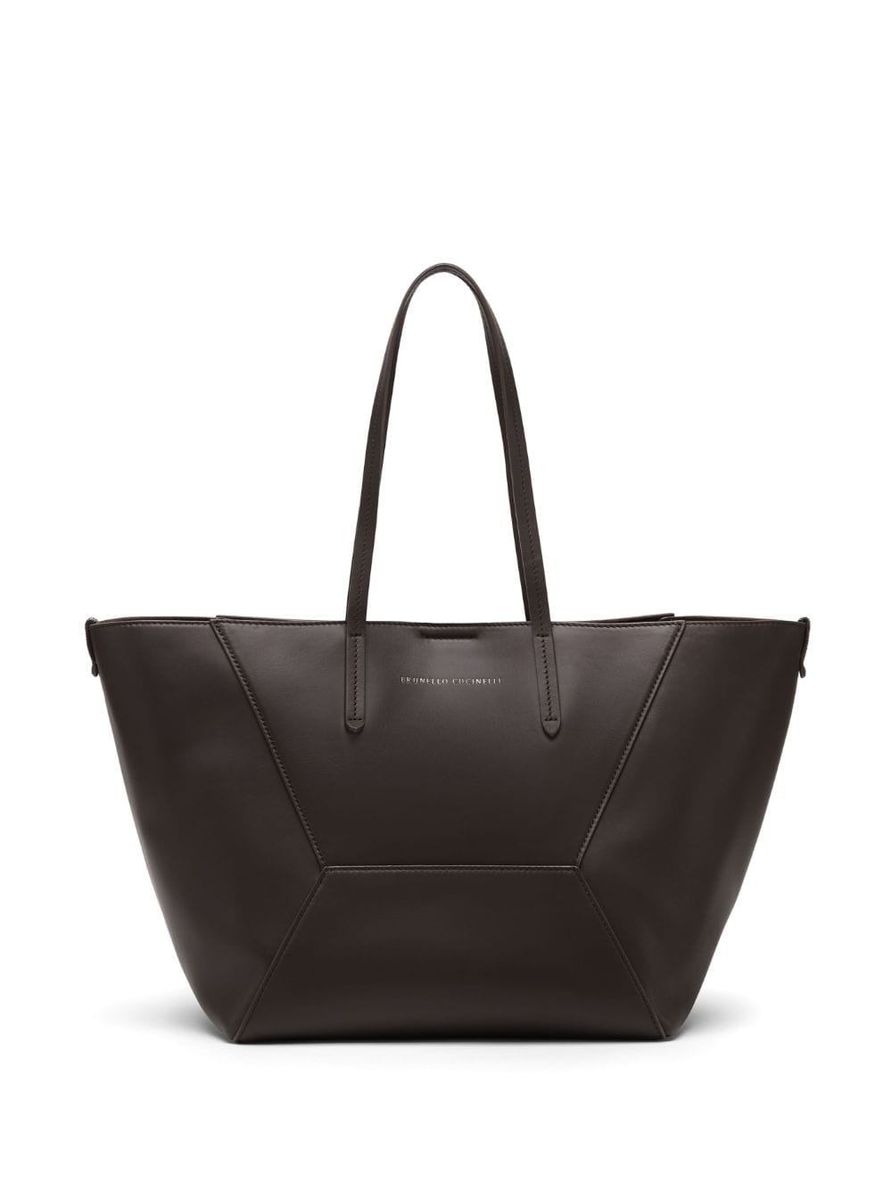 small BC Duo leather tote bag Highlights - Pine cone brown - Calf leather - Logo stamp to the front - Decorative stitching - Two top handles - Main compartment - Removable pouch Made in Italy Composition Outer: Calf Leather 100% SIZE & FIT Measurement DEPTH 11.41 in(29 cm) HEIGHT 12.59 in(32 cm) WIDTH 24.4 in(62 cm)