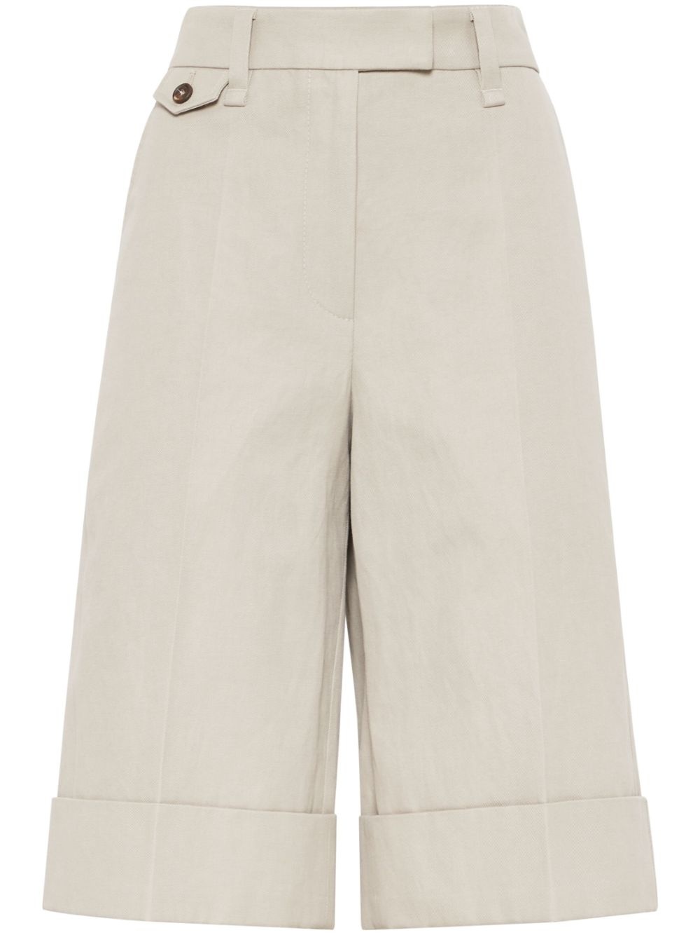 long shorts Highlights - Beige - Concealed front fastening - Front flap pocket - Two side inset pockets - Two rear flap pockets Made in Italy Composition Cotton 76%, Eco Linen 24%