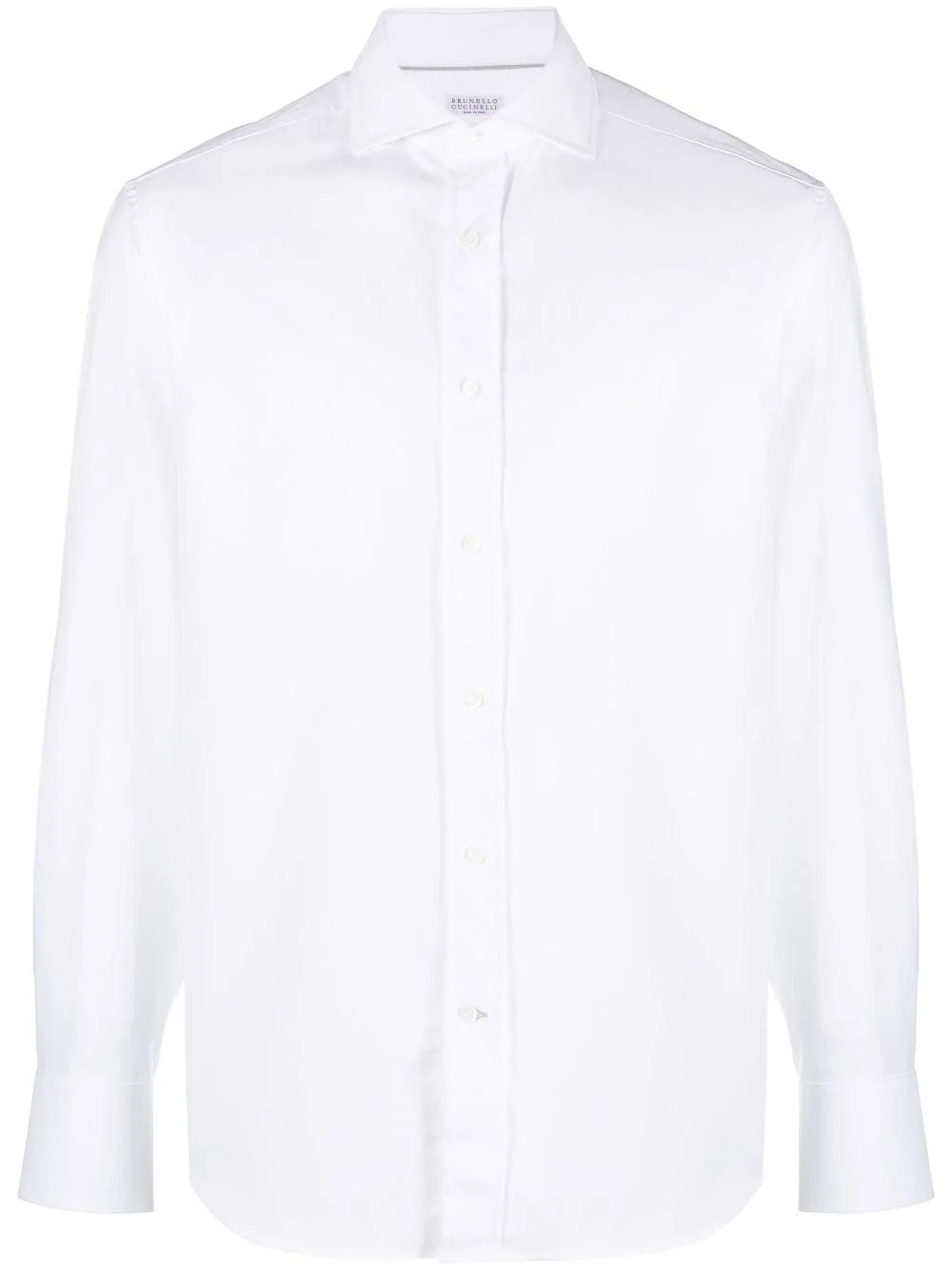 long-sleeve cotton shirt Highlights - White - Cotton - Spread collar - Front button fastening - Long sleeves - Buttoned cuffs - Curved hem Made in Italy Composition Cotton 100% SIZE & FIT Model measurements Height 6 ft 2 in(1.87 m) Bust/Chest 36.41 in(92.5 cm) Hips 35.43 in(90 cm) Waist 29.52 in(75 cm) Measurement CHEST 39.37 in(100 cm) SLEEVE LENGTH 25.19 in(64 cm) WAIST 35.43 in(90 cm) FittingInformation Designed for a regular fit, allowing for a comfortably loose fit throughout the body Made from a midweight non-stretch fabric This piece fits true to size – take your usual size