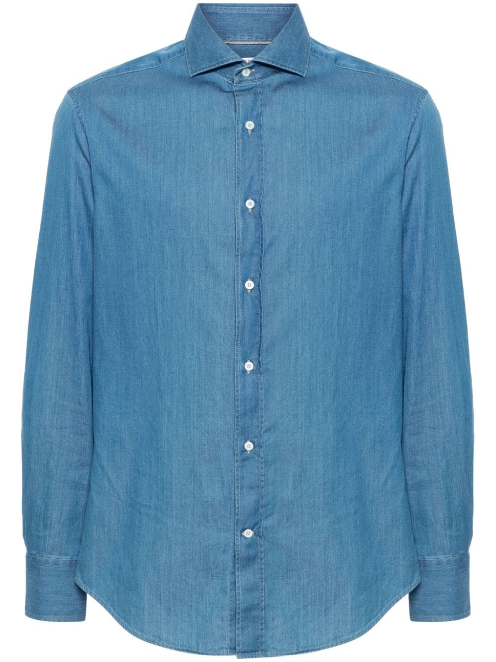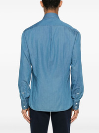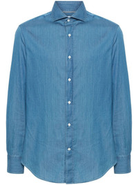 long-sleeve cotton shirt Highlights - Steel blue - Cotton - Chambray - Spread collar - Long sleeves - Buttoned-cuff sleeves - Curved hem - Front button fastening Made in Italy Composition Cotton 100% SIZE & FIT Model measurements Height 6 ft 2 in(1.87 m) Bust/Chest 38.18 in(97 cm) Hips 36.61 in(93 cm) Waist 29.13 in(74 cm) FittingInformation Designed for a slim fit, offering a comfortable fit that sits just away from the body The dart stitching adds structure and a closer fit in the torso of this piece Made from a midweight non-stretch fabric This piece fits true to size – take your usual size