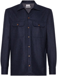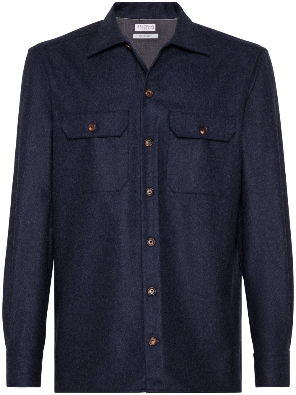 long-sleeve flannel overshirt Highlights - Navy blue - Virgin wool - Flannel - Classic collar - Front button fastening - Long sleeves - Buttoned cuffs - Two chest flap pockets - Straight hem Made in Italy Composition Virgin Wool 100%