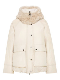 long-sleeve jacket Highlights - Dove grey - Button fastening - Front flap pockets - Drawstring hem - Water-resistant Made in Italy Composition Outer: Lamb Fur 100%, Polyester 55%, Cotton 45% Lining: Nylon 100%, Goose Down 90%, Goose Feather 10% Washing instructions Specialist Cleaning