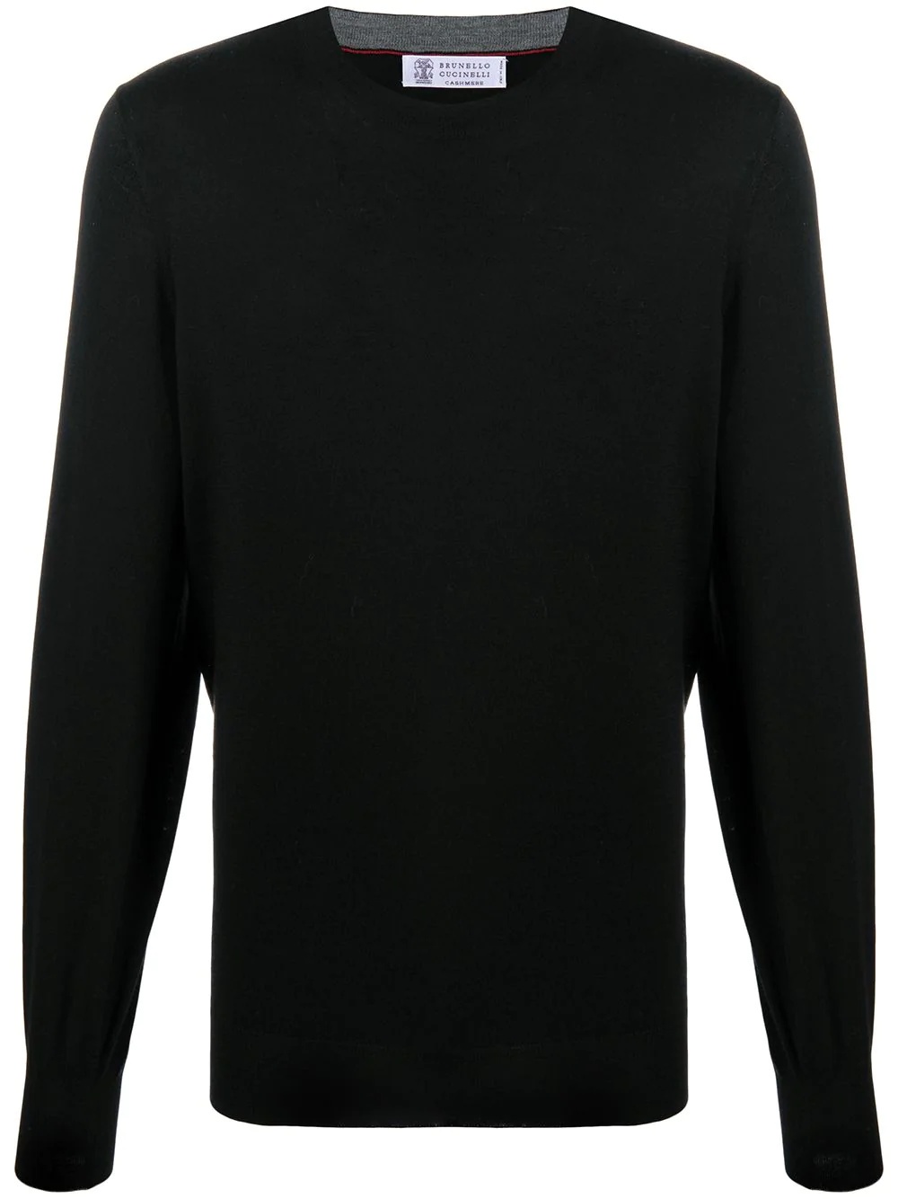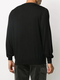 long-sleeve jumper Highlights - Black - Virgin-wool-cashmere - Round neck - Long sleeves - Straight hem Made in Italy Composition Virgin Wool 90%, Cashmere 10% SIZE & FIT Model measurements Height 6 ft 1 in(1.85 m) Bust/Chest 37.79 in(96 cm) Hips 37.4 in(95 cm) Waist 30.7 in(78 cm) Washing instructions Hand Wash