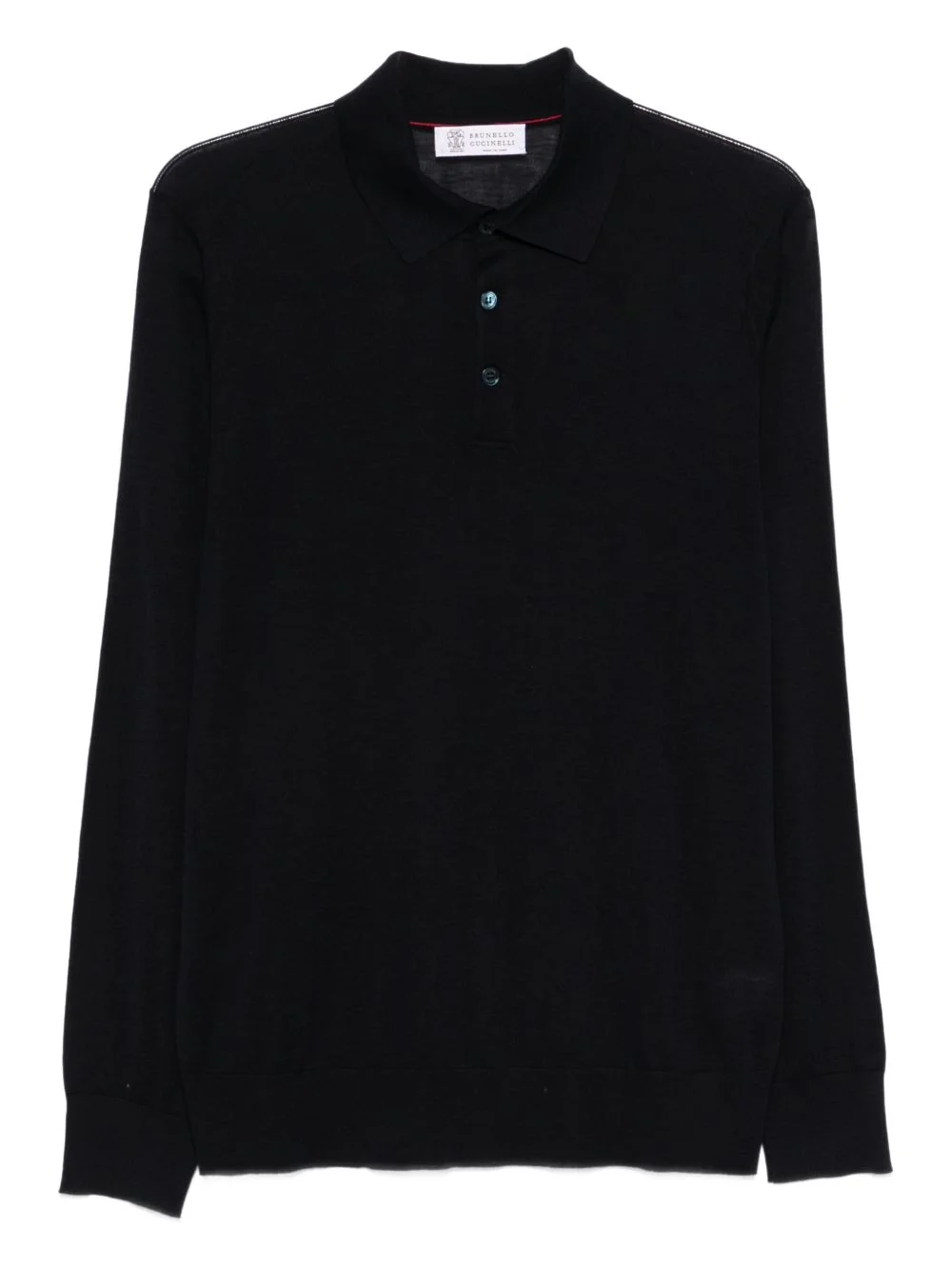 long-sleeve polo shirt Highlights - Dark blue - Front button placket - Long sleeves Made in Italy Composition Silk 62%, Cotton 38% SIZE & FIT Model measurements Height 6 ft 2 in(1.87 m) Bust/Chest 36.41 in(92.5 cm) Hips 37 in(94 cm) Waist 29.52 in(75 cm) Washing instructions Hand Wash