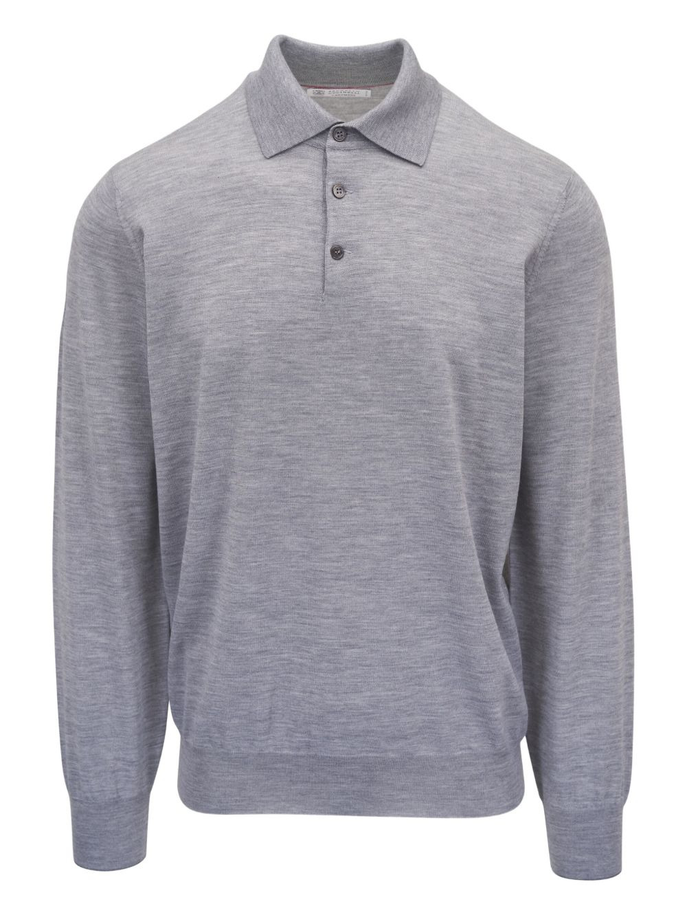 long-sleeve polo shirt Highlights - Grey - Polo collar - Button placket - Long sleeves - Ribbed cuffs - Straight hem Made in Italy Composition Virgin Wool 90%, Cashmere 10% Washing instructions Hand Wash