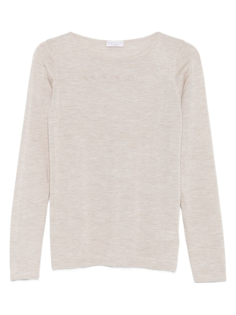long-sleeve round-neck T-shirt Highlights - Beige - Cashmere-silk blend - Round neck - Long sleeves - Straight hem Made in Italy Composition Cashmere 70%, Silk 30% SIZE & FIT Model measurements Height 5 ft 10 in(1.78 m) Bust/Chest 33.85 in(86 cm) Hips 36.61 in(93 cm) Waist 26.77 in(68 cm) Washing instructions Hand Wash