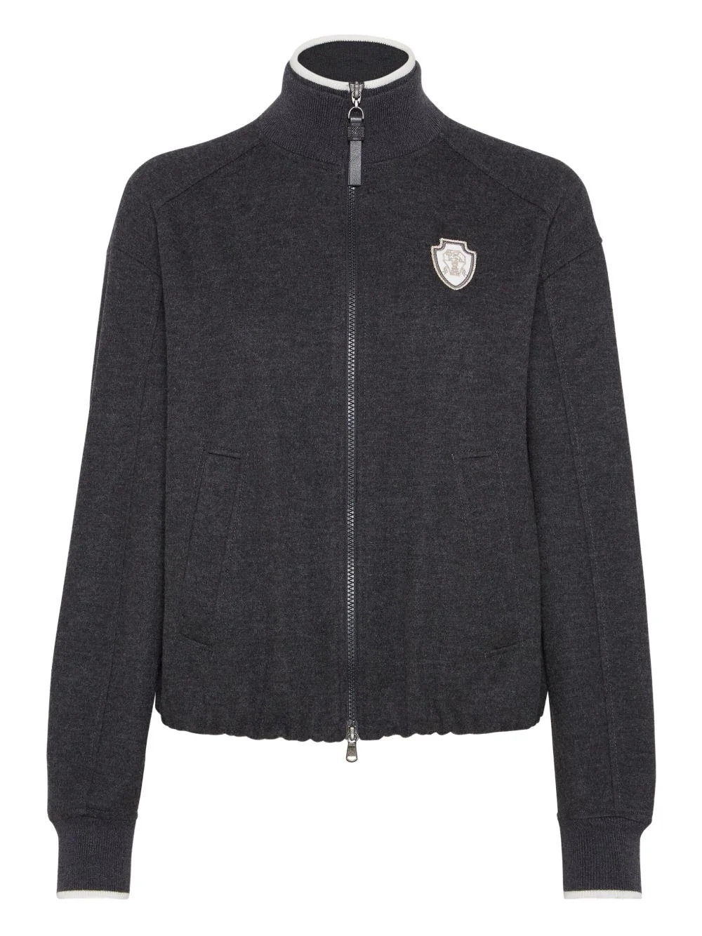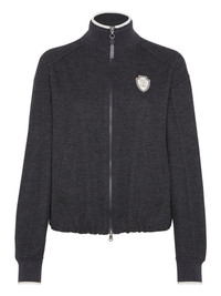 long-sleeve sweatshirt Highlights - Dark grey - Logo patch - Zip fastening - High neck - Ribbed trims Made in Italy Composition Outer: Cashmere 96%, Polyester 4% Lining: Silk 100% Washing instructions Read Manufacturer Guidelines