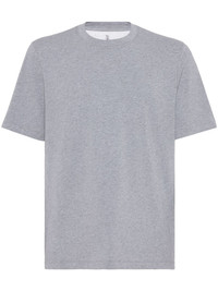 melange-effect cotton-blend T-shirt Highlights - Ash grey - Cotton blend - Melange effect - Jersey texture - Crew neck - Short sleeves - Straight hem Made in Italy Composition Polyester 70%, Cotton 30% Washing instructions Read Manufacturer Guidelines