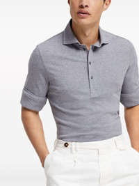 melange-effect cotton polo shirt Highlights - Ash grey - Cotton - Melange effect - Mother-of-pearl buttons - Spread collar - Front button placket - Long sleeves - Ribbed cuffs - Straight hem Made in Italy Composition Cotton 100% Washing instructions Read Manufacturer Guidelines