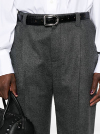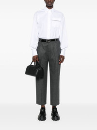 melange-effect cropped trousers Highlights - Medium grey - Virgin wool-cashmere blend - Brushed finish - Melange effect - Belt loops - Rear elasticated waistband - Two diagonal pockets to the sides - Faux pocket detail - Pleat detailing - Tapered leg - Cropped - Concealed front button, hook and zip fastening Made in Italy Composition Outer: Virgin Wool 88%, Cashmere 12% Lining: Polyester 36%, Acetate 32%, Cupro 32% SIZE & FIT Model measurements Height 5 ft 10 in(1.77 m) Bust/Chest 32.28 in(82 cm) Hips 35.03 in(89 cm) Waist 25.19 in(64 cm) FittingInformation Designed for a tapered fit, these trousers allow for a close fit at the waist and a loose unrestricted fit over the leg with a closer fit towards the ankle The partially elasticated waistband offers increased movement and comfort at the waist Made from a midweight non-stretch fabric This piece fits true to size – take your usual size
