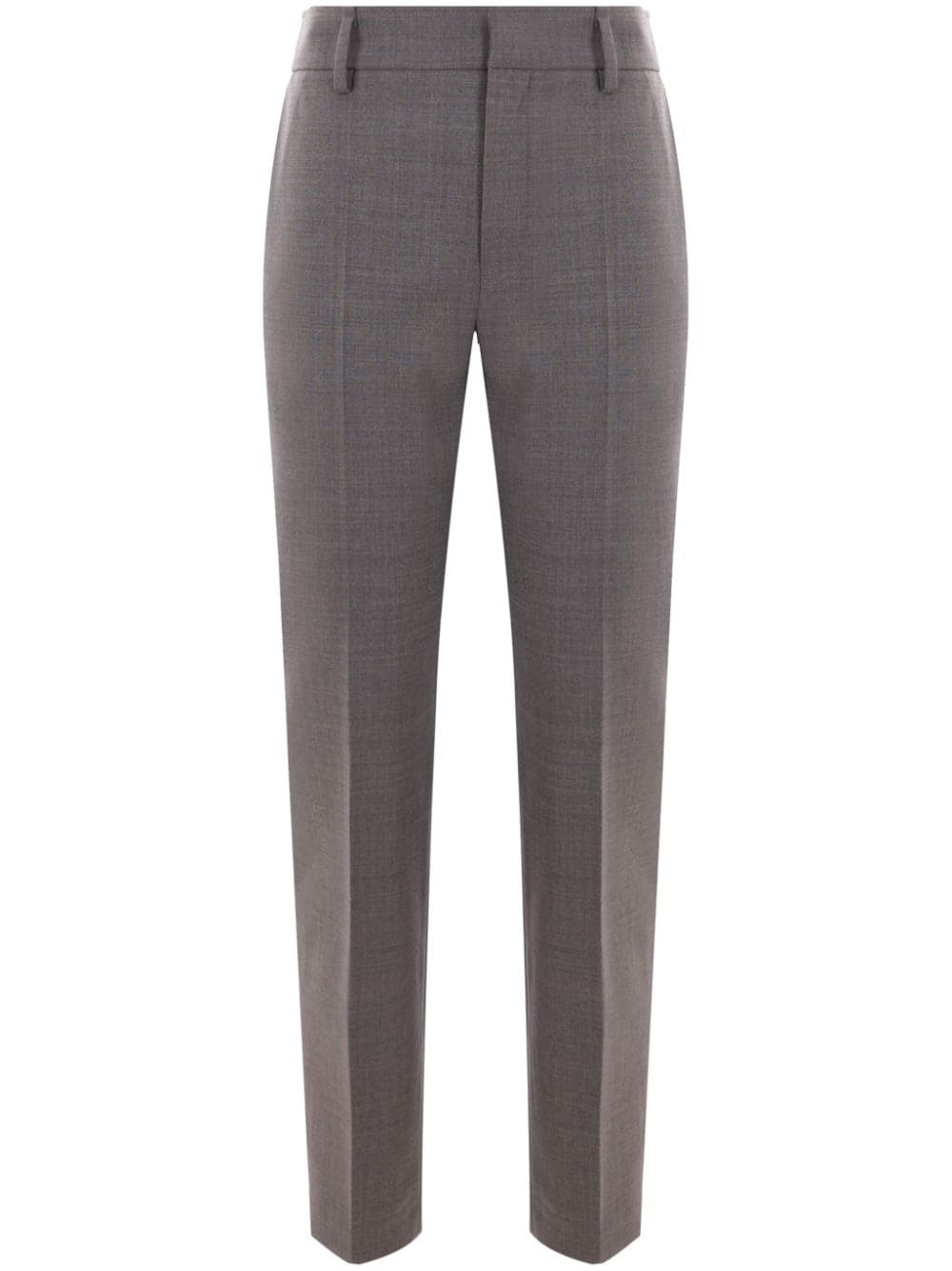 melange-effect tailored trousers Highlights - Medium grey - Virgin wool blend - Stretch-design - Melange effect - Tailored design - Pressed crease - High-waisted - Concealed front fastening - Belt loops - Slim cut - Two side slit pockets - Two rear welt pockets Made in Italy Composition Virgin Wool 75%, Polyamide 23%, Elastane 2%