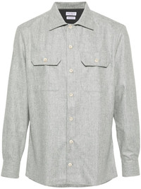 melange-effect wool shirt Highlights - Grey - Wool - Melange effect - Spread collar - Front button fastening - Long sleeves - Buttoned cuffs - Two button-fastening chest pockets - Straight hem Made in Italy Composition Cotton 100%, Virgin Wool 100% SIZE & FIT Model measurements Height 6 ft 2 in(1.87 m) Bust/Chest 36.41 in(92.5 cm) Hips 35.43 in(90 cm) Waist 29.52 in(75 cm) FittingInformation Designed for a regular fit, allowing for a comfortably loose fit throughout the body Made from a midweight non-stretch fabric This piece fits true to size – take your usual size