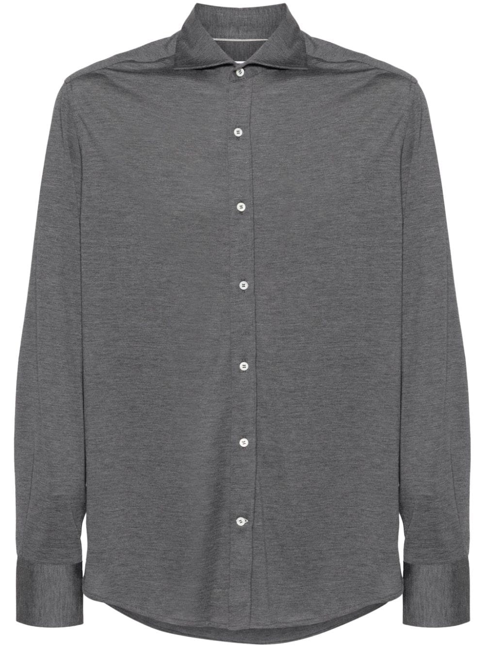 melange jersey shirt Highlights - Dark grey - Silk-cotton blend - Lightweight jersey - Melange effect - Spread collar - Front button fastening - Long sleeves - Buttoned cuffs - Curved hem Made in Italy Composition Silk 62%, Cotton 38% SIZE & FIT Model measurements Height 6 ft 2 in(1.87 m) Bust/Chest 36.41 in(92.5 cm) Hips 37 in(94 cm) Waist 29.52 in(75 cm) FittingInformation Designed for a slim fit, offering a comfortable fit that sits just away from the body Made from a midweight non-stretch fabric, this piece offers minimal elasticity when worn This piece fits true to size – take your usual size