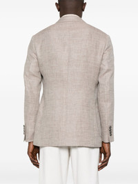 melange-effect blazer Highlights - Sesame beige - Double-breasted button fastening - Chest welt pocket - Two side patch pockets - English rear vents Made in Italy Composition Lining: Cupro 100% Outer: Linen/Flax 67%, Cotton 33% SIZE & FIT Model measurements Height 6 ft 0 in(1.84 m) Bust/Chest 35.82 in(91 cm) Hips 37 in(94 cm) Waist 28.34 in(72 cm) FittingInformation Designed for a slim fit, offering a comfortable fit that sits just away from the body The vented hem offers movement at the rear Made from a midweight non-stretch fabric