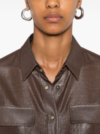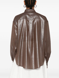 metallic-finish shirt Highlights - Brown - Metallic finish - Press-stud fastening - Long sleeves - Two chest flap pockets - Point collar Made in Italy Composition Polyester 55%, Virgin Wool 45% SIZE & FIT Model measurements Height 5 ft 10 in(1.77 m) Bust/Chest 33.07 in(84 cm) Hips 37 in(94 cm) Waist 24.8 in(63 cm) FittingInformation Designed to be unstructured, offering a loose fit throughout Made from a midweight non-stretch fabric Washing instructions Hand Wash
