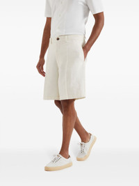 mid-rise bermuda shorts Highlights - Cream white - Mid-rise - Belt loops - Pressed crease - Two side slit pockets - Two rear welt pockets - Knee-length Made in Italy Composition Linen/Flax 43%, Virgin Wool 21%, Silk 21%, Cotton 15% Washing instructions Read Manufacturer Guidelines