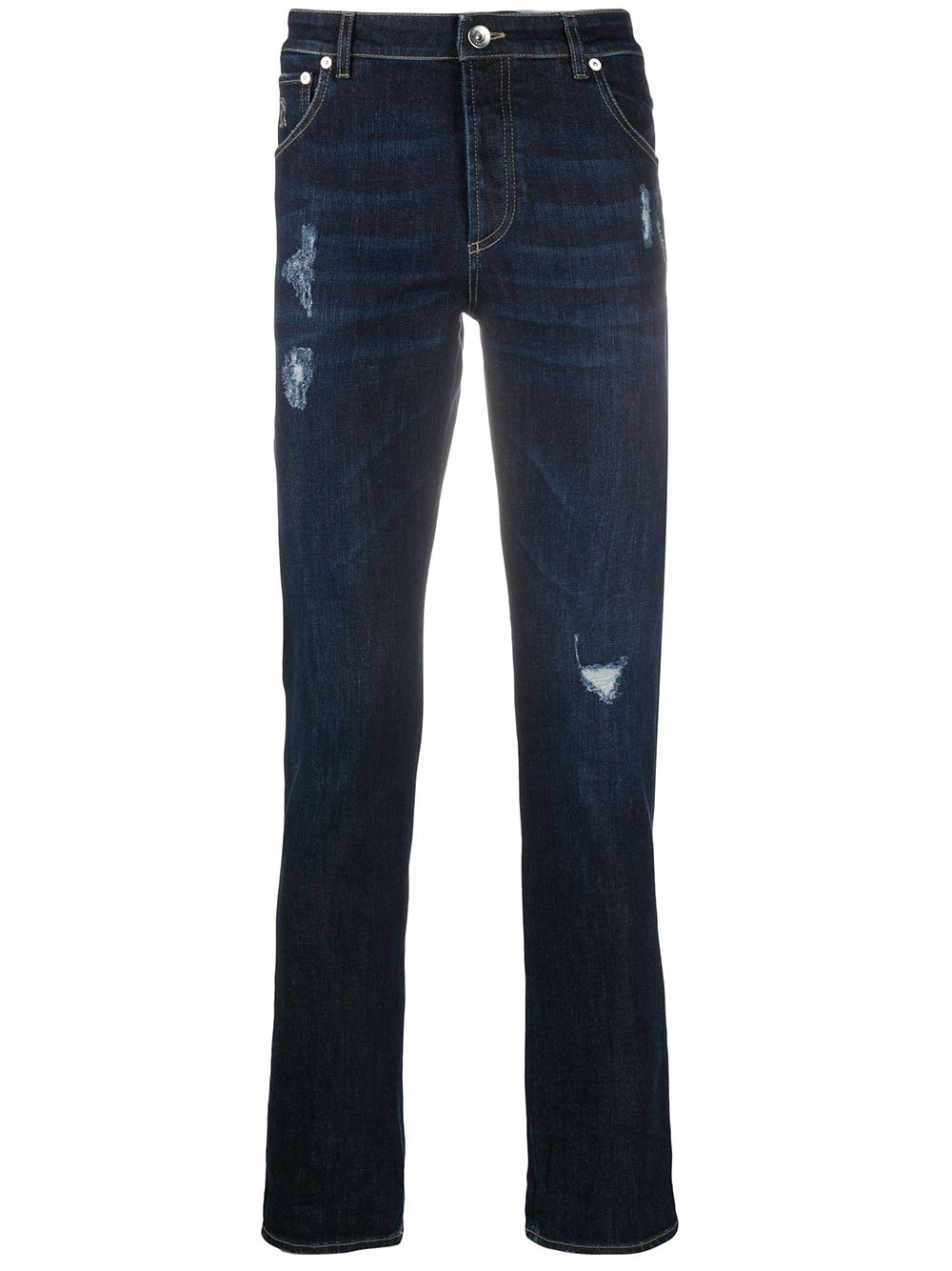 mid-rise slim jeans Highlights - Dark blue - Cotton-blend - Ripped detailing - Belt loops - Front button and zip fastening - Classic five pockets Made in Italy Composition Outer: Cotton 98%, Polyurethane 2% Lining: Cotton 100% SIZE & FIT Model measurements Height 6 ft 2 in(1.87 m) Bust/Chest 37.79 in(96 cm) Hips 37.79 in(96 cm) Waist 30.31 in(77 cm) FittingInformation This piece fits true to size. We recommend you get your regular size Cut for a slim fit Made with a mid-weight fabric Washing instructions Machine Wash
