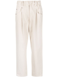 mid-rise straight trousers A contemporary silhouette combined with relaxed lines defines these BRUNELLO CUCINELLI trousers. The beige-hued pair features an elasticated waistband and a straight leg. The signature Monili chain that embellishes the back pocket adds a precious sparkling note. Highlights - Light beige - Stretch-cotton - Straight leg - Signature monili chain detail - Mid-rise - Belt loops - Elasticated waistband - Classic five pockets Made in Italy Composition Outer: Eco Brass 100%, Cotton 97%, Elastane 3% Lining: Acetate 65%, Polyester 35% SIZE & FIT Model measurements Height 5 ft 10 in(1.78 m) Bust/Chest 33.07 in(84 cm) Hips 35.82 in(91 cm) Waist 26.96 in(68.5 cm) FittingInformation Designed for a tapered fit, these trousers allow for a close fit at the waist and a loose unrestricted fit over the leg with a closer fit towards the ankle The elasticated waist allows for a comfortable fit Made from a midweight stretch fabric, this piece offers elasticity and flexibility when worn This piece fits true to size – take your usual size Washing instructions Dry Clean Only