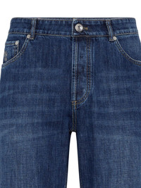 mid-rise tapered jeans Highlights - Ocean blue - Cotton - Mid-wash denim - Logo patch to the rear - Belt loops - Front button fastening - Mid-rise - Tapered leg - Classic five pockets Made in Italy Composition Cotton 100% SIZE & FIT FittingInformation Designed for a tapered leg, these jeans allow a loose unrestricted fit over the leg with a closer fit towards the ankle Sturdy and hard-wearing, this denim piece offers no stretch This piece fits true to size – take your usual size Washing instructions Machine Wash