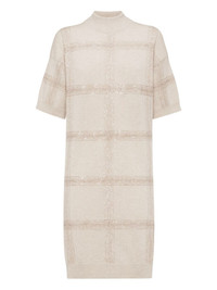mock-neck midi dress Highlights - Beige - Check pattern - Short sleeves - Mock neck Made in Italy Composition Virgin Wool 60%, Cashmere 30% Washing instructions Hand Wash