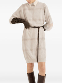 Virgin wool, cashmere and silk knit dress with dazzling macro Prince of Wales embroidery