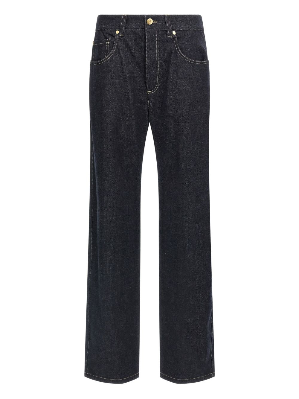 monile-detailed jeans Highlights - Blue - Garment-dyed - Cotton denim - Contrast stitching - Monile detail - Leather logo tag - Five pockets - Front zip and button closure Made in Italy Composition Cotton 100% Washing instructions Read Manufacturer Guidelines