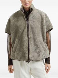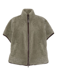 Monili chain-detail shearling jacket Highlights - Taupe grey - Front two-way zip fastening - Two side welt pockets - Stand-up collar - Short sleeves Made in Italy Composition Lamb Shearling 100% Washing instructions Read Manufacturer Guidelines