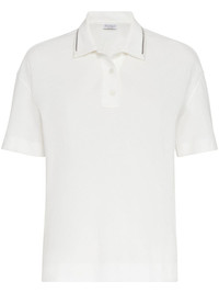 Monili chain-detailed cotton polo shirt Highlights - White - Cotton/silk - Pique weave - Polo collar - Signature monili chain detail - Silk trim panelling - Short front button fastening - Mother-of-pearl buttons - Short sleeves - Short side slits - Straight hem Made in Italy Composition Cotton 100% Washing instructions Read Manufacturer Guidelines