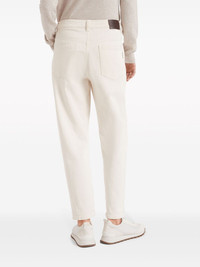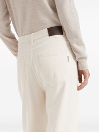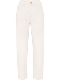 Monili-chain high-rise straight-leg jeans A timeless staple, these Brunello Cucinelli jeans sit high at the waist and fall to a straight leg. Presented in a versatile white hue, the pair is decorated with a logo patch and the brand's signature Monili chain at the rear pocket. Highlights - Ivory white - Cotton - Logo patch to the rear - Signature monili chain detail - Tonal stitching - High-waisted - Belt loops - Straight leg - Concealed fly and button fastening - Classic five pockets Made in Italy Composition Eco Brass 100%, Cotton 100% Washing instructions Machine Wash