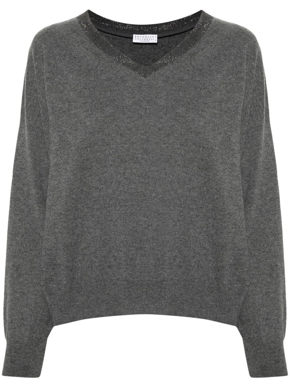 Monili-detail cashmere jumper Highlights - Anthracite grey - Cashmere - Knitted construction - Signature monili chain detail - V-neck - Long sleeves - Ribbed cuffs and hem - Straight hem Made in Italy Composition Cashmere 100%, Cotton 93%, Elastane 7% SIZE & FIT Model measurements Height 5 ft 10 in(1.77 m) Bust/Chest 32.28 in(82 cm) Hips 35.03 in(89 cm) Waist 25.19 in(64 cm) FittingInformation Designed to be unstructured, offering a loose fit throughout Made with a midweight knit, this piece offers some stretch This piece fits true to size – take your usual size Washing instructions Hand Wash