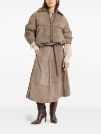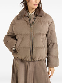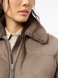 Monili-detail jacket Highlights - Beige - Suede texture - Shearling collar - Zip fastening - Quilted design - Front pockets Made in Italy Composition Outer: Leather 100%, Suede 100%, Lamb Shearling 100% Lining: Goose Down 90%, Goose Feather 10% Washing instructions Specialist Cleaning