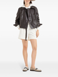 Cotton organza and English rib knit faux-layered sweatshirt with detachable hood and monili